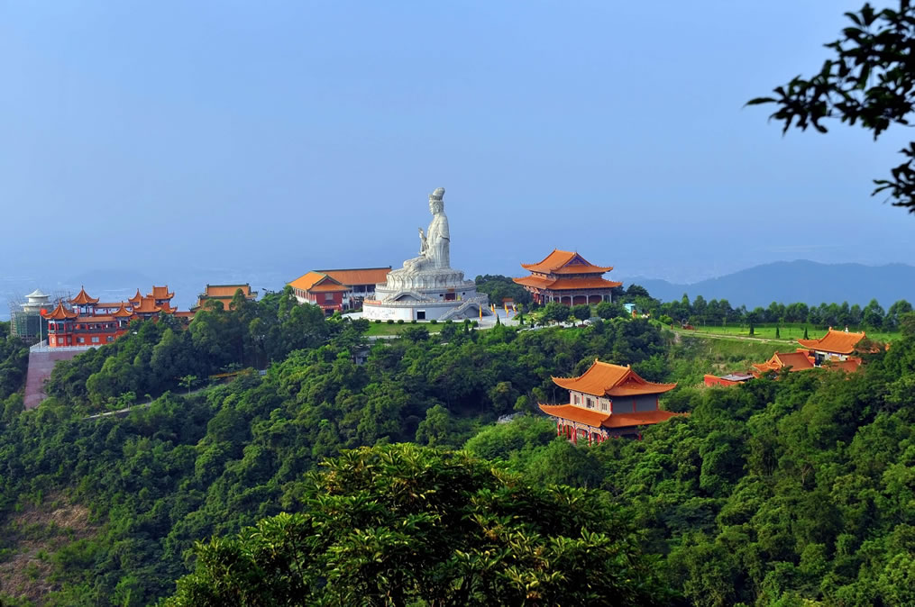 廣東觀音山國(guó)家森林公園,位于廣東省東莞市樟木頭鎮(zhèn)筆架山路190號(hào)觀音山,地處珠江三角洲東南部,東莞市東部,樟木頭鎮(zhèn)中心邊緣,距鎮(zhèn)中心1.5千米,距離東莞市區(qū)大約40千米,總面積657.18公頃。廣東觀音山國(guó)家森林公園最高點(diǎn)為耀佛嶺,海拔566米,觀音山海拔488米。屬丘陵山地地貌。所在地區(qū)樟木頭鎮(zhèn)屬南亞熱帶海洋性季風(fēng)氣候區(qū)。森林覆蓋率達(dá)92%以上,常見(jiàn)植物種類(lèi)有73科199種。其中屬?lài)?guó)家保護(hù)的動(dòng)植物22種,瀕危植物包括粘木、白桂木、蘇鐵蕨、土蠶霜、金茶花、野茶樹(shù)和野生龍眼等。有獸類(lèi)、飛鳥(niǎo)類(lèi)、甲殼類(lèi)、昆蟲(chóng)類(lèi)等300多種動(dòng)物。廣東觀音山國(guó)家森林公園內(nèi)建成了以正門(mén)樓、觀音廣場(chǎng)、觀世音菩薩法像、仙宮嶺、普渡溪、感恩湖、回音壁、怡心亭、慈云閣、先人石壘、古樹(shù)博物館、國(guó)際會(huì)展中心、仙泉游泳館等20余處景點(diǎn);內(nèi)設(shè)6.8千米的吉祥路(佛光路),既可觀景也可休閑健身;還有飛天威亞、龍鳳天梯、冰雪樂(lè)園、山地越野車(chē)等娛樂(lè)項(xiàng)目,是親子家庭放松休閑、寓教于樂(lè)的自然課堂。