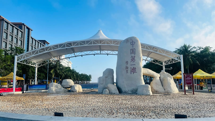 中國第一灘旅游度假區(qū),又稱茂名濱海公園,位于廣東省茂名市電白區(qū)南海街道海濱二路,距離茂名市城區(qū)25千米。其規(guī)劃面積3.6平方千米,核心區(qū)為1.2平方千米,享有“東方夏威夷”“南方北戴河”美譽。民國時期,孫中山先生在建國方略里將水東港列為九大良港之一;1993年,中國第一灘旅游度假區(qū)正式開啟建設(shè)篇章;2012年,茂名市政府整合第一灘沿岸20公里海灘景點,設(shè)立“茂名濱海公園”。中國第一灘因“林最綠,灘最長,水最清”“三最”而得名,國畫大師關(guān)山月創(chuàng)作的懸掛于北京人民大會堂巨幅圖畫《綠色長城》就取材于此。這里屬亞熱帶季風氣候,冬無嚴寒,夏無酷暑,熱量豐富,雨量充沛,干濕季明顯。所在的水東灣是半封閉天然古瀉湖灣,面積28.2平方千米。度假區(qū)沙灘長達12千米、寬闊平緩、沙質(zhì)潔白細軟,外側(cè)是寬達800~1000米的沿海防護林帶。景區(qū)共劃分海濱浴場區(qū)、海上運動區(qū)、海濱度假區(qū)和中心廣場區(qū)四個功能區(qū),景點眾多,包括第一灘、防護林帶、濱海綠道、虎頭山、晏鏡嶺和童子灣等,開發(fā)有海水浴、海上摩托艇、沙灘排球、沙灘跑車等游樂健身項目。