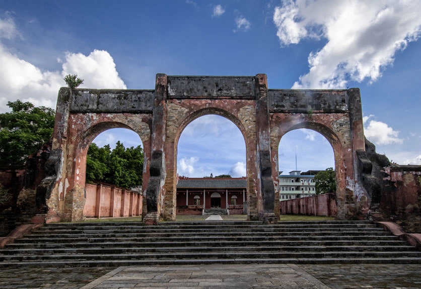 - 特色:古城唯一保留下來的城門,紅墻綠瓦,仿宮殿樓臺(tái)式建筑,分兩層,底層為甕城,中開拱門,雄偉壯觀。