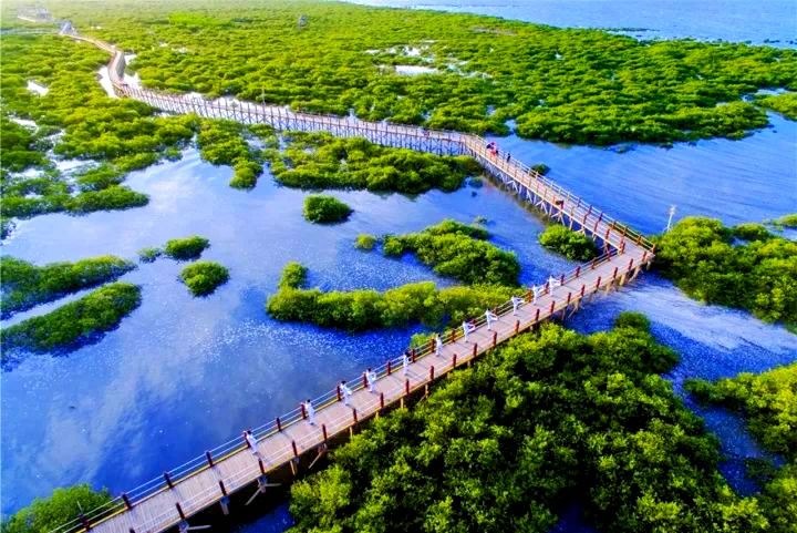 - 紅樹林生態(tài)區(qū):綿延6公里的生態(tài)海岸線,漲潮時(shí)呈現(xiàn)“海上森林”奇觀,退潮時(shí)灘涂可見招潮蟹、彈涂魚等生物,適合觀鳥、攝影。