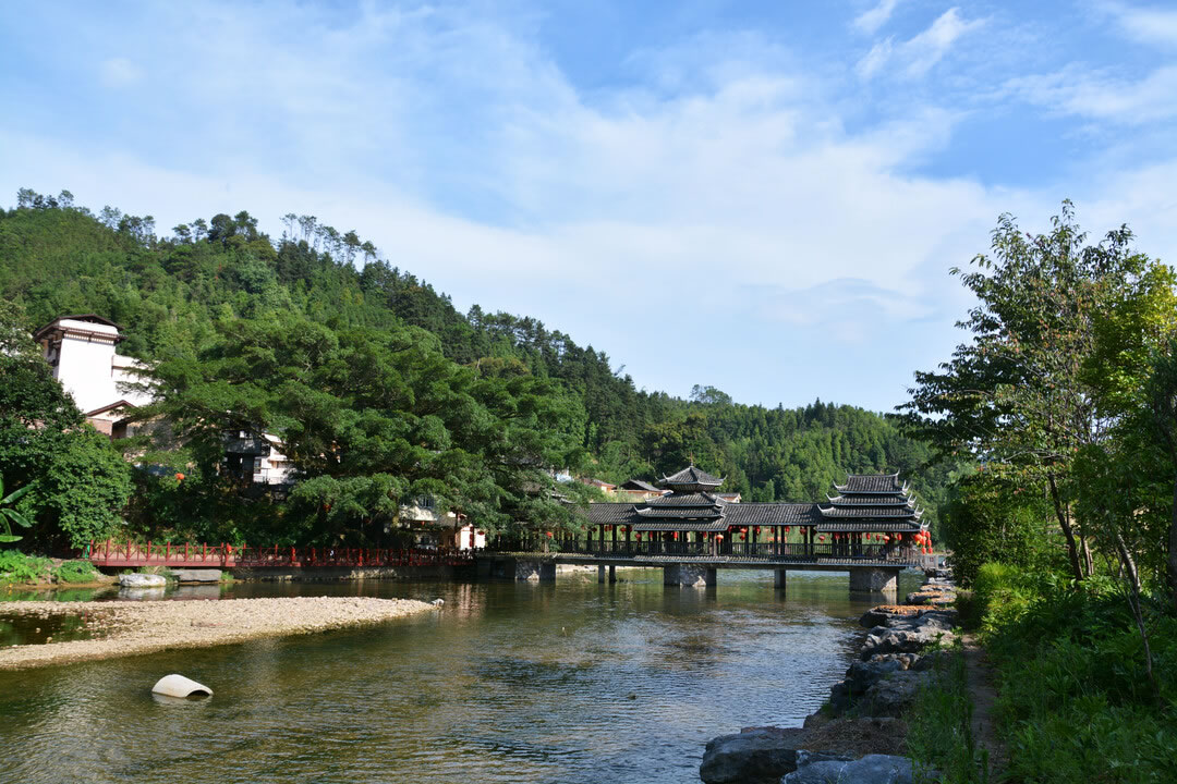 - 上午:游客中心→風(fēng)雨橋→瑤繡館體驗→天鵝湖游船