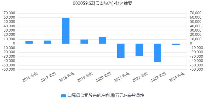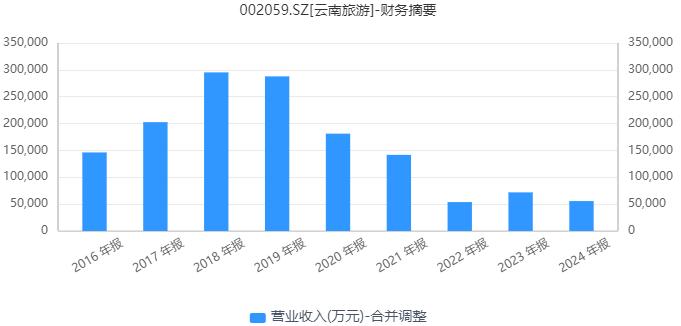 雖然擁有稀缺的旅游資源,但是在業(yè)績上,云南旅游卻沒有將優(yōu)勢轉(zhuǎn)化為利潤。營收方面,公司在2018年達(dá)到高點(diǎn)后就快速下滑,這幾年?duì)I收規(guī)模縮水較嚴(yán)重,2024年公司的營收5.57億元,僅相當(dāng)于2018年?duì)I收的18%左右。