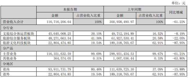 財(cái)報(bào)顯示,最近幾年,公司文旅科技板塊的營收占比均在50%以上,是公司的主要驅(qū)動(dòng)力,然而今年上半年,公司文旅科技板塊營收僅有2280.45萬元,占比19.54%,縮水嚴(yán)重。