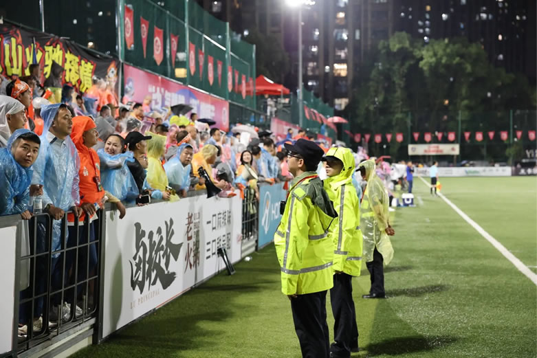 在此過程中,民警、輔警在嚴(yán)謹(jǐn)安保的同時(shí),還用心提供便民服務(wù)。期間,他們耐心幫助小球迷穿好雨衣、協(xié)助群眾尋找遺失物品、攙扶行動(dòng)不便者通過積水路段,用實(shí)際行動(dòng)為賽場(chǎng)增添溫暖。