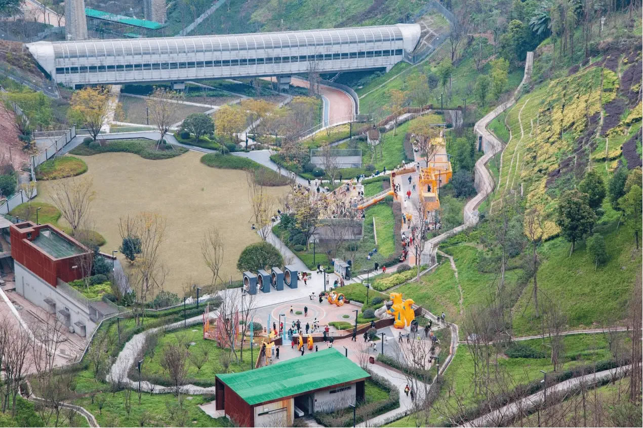 依山就勢(shì),渝中區(qū)推進(jìn)21萬(wàn)平方米坡坎崖由“禿斑”變“綠毯”、由“荒地”變“游園”、由“治理點(diǎn)”變“打卡點(diǎn)”。實(shí)現(xiàn)了鵝嶺—虎頭巖10.8公里山脊線綠蔭如蓋,長(zhǎng)江、嘉陵江11.5公里濱水綠帶織綠成廊。渝中在紅巖公園充分利用“漏斗”地形,擋墻加固崖壁緩坡,生態(tài)復(fù)綠4.35萬(wàn)平方米,中間平坦區(qū)域開辟為兒童樂(lè)園,入選全國(guó)兒童友好空間典型案例。