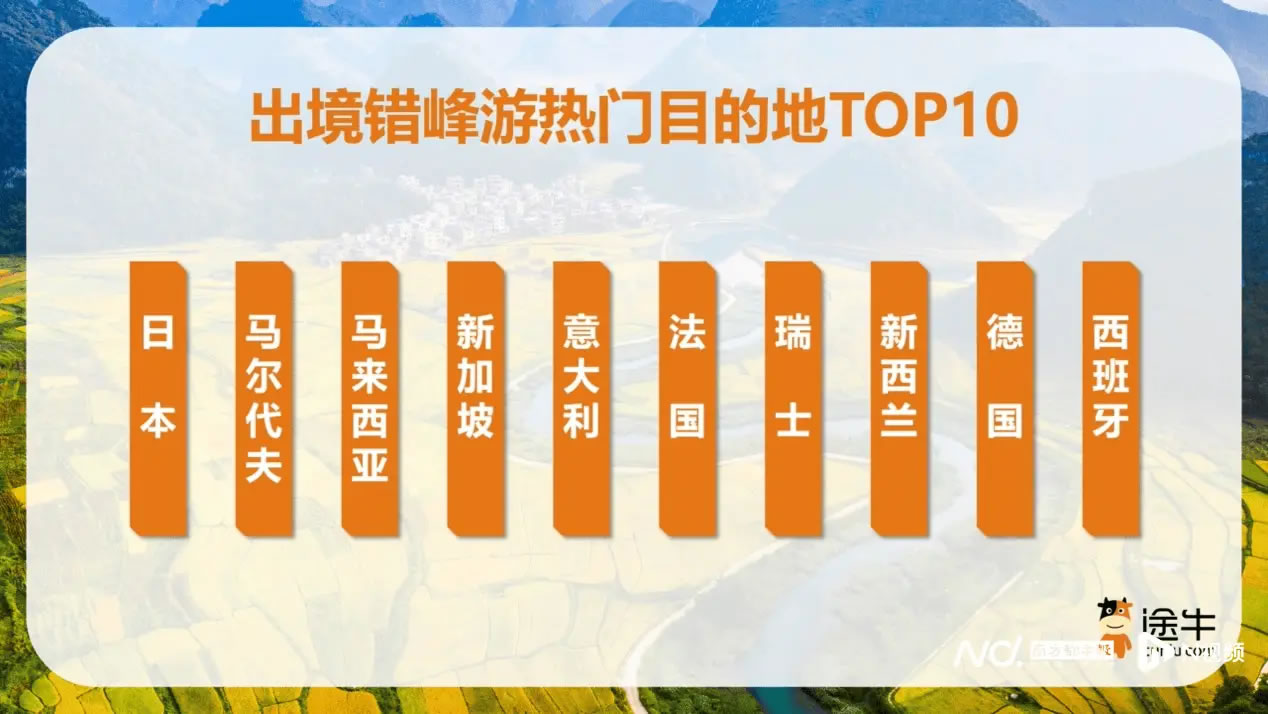 在出境錯峰游中,日本、韓國、泰國、馬來西亞、新加坡等短線目的地,以及意大利、法國、瑞士、新西蘭等長線國家受到關(guān)注。途牛數(shù)據(jù)顯示,出境錯峰游中跟團(tuán)游占比接近75%,如“德國-法國-意大利-瑞士12日游”“新西蘭南北島12日游”等產(chǎn)品預(yù)訂熱度靠前。
