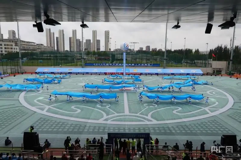揭幕戰(zhàn)開始前,大連職工傾情演繹的主題表演《大海啊故鄉(xiāng)》,成為表演節(jié)目中的一抹亮色,舞臺上藍(lán)色海浪涌動,職工青春的活力與濱城的海韻完美交融,將開放包容的城市氣質(zhì)化作澎湃的視覺交響,藝術(shù)化呈現(xiàn)了大連職工足球發(fā)展的歷史。健排舞《我愿全速奔向你》,原創(chuàng)舞蹈《大連雄風(fēng)》,歌舞表演《奔跑》等節(jié)目充分展示了大連城市發(fā)展活力和開放文明新形象,展現(xiàn)了大連職工昂揚向上、積極進(jìn)取的精神風(fēng)貌。伴隨著激昂的樂曲,來自大連市實驗小學(xué)和沙河口區(qū)東北路小學(xué)兩所國內(nèi)知名足球特色學(xué)校的孩子們,帶來了精彩的顛球表演,孩子們個個精神抖擻、技藝嫻熟,把現(xiàn)場的氛圍推向高潮。