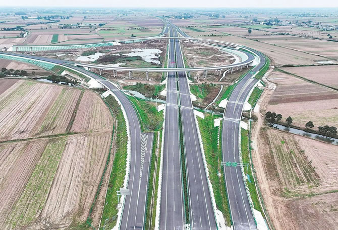 10月19日,蒙城縣境內(nèi)拍攝的附屬工程建設進入尾聲的亳蒙高速板橋集樞紐。目前,亳(州)蒙(城)高速已完成總工程量的98%,計劃10月底交工驗收,11月全線通車。亳蒙高速建成后將使亳州蒙城兩地行車時間縮短至40分鐘。(胡衛(wèi)國 攝)