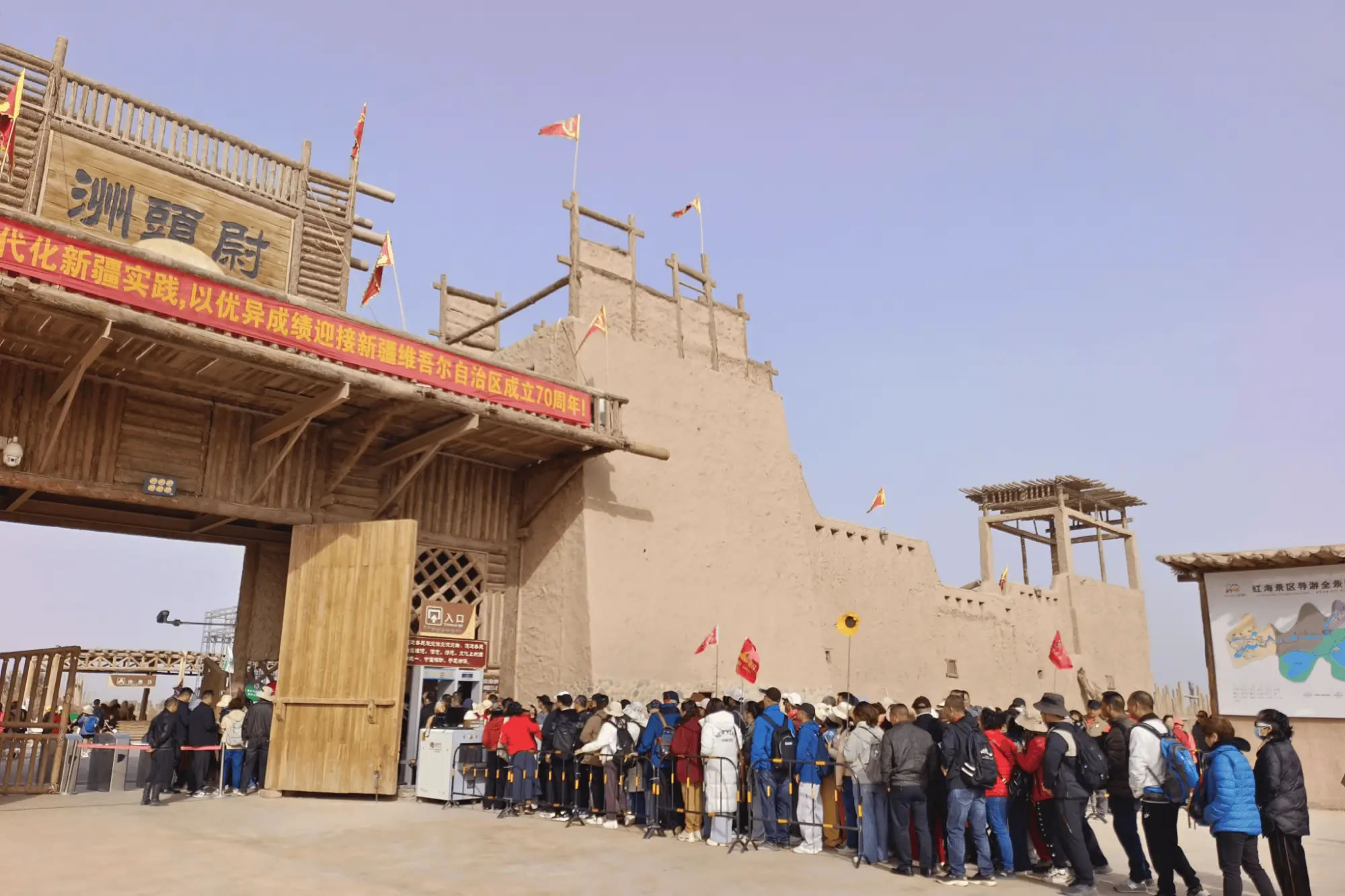 游客正在景區(qū)排隊(duì) (熱孜萬古 攝)