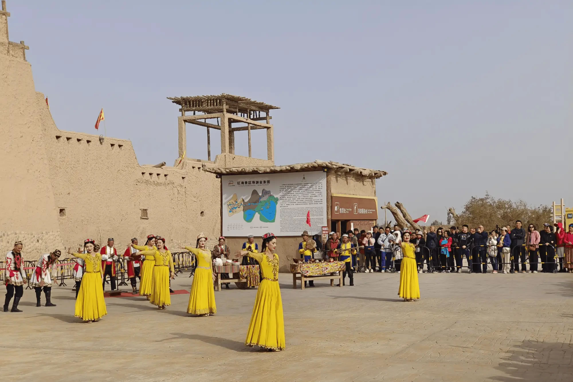 作為第六屆新疆喀什絲路文化胡楊節(jié)的分會場,巴楚縣依托紅海景區(qū),精心策劃了一系列特色活動,為游客們帶來多元的文化體驗(yàn)。在尉頭洲城門,開幕式的場地已經(jīng)完成設(shè)備調(diào)試,周邊的特色美食展位也已搭建完畢。在“絲路第一馕坑”旁,工作人員正忙碌地籌備著各種美食,屆時,烤全駝、烤牦牛以及烤羊等美食將在此亮相,為游客們帶來一場味覺與視覺的雙重盛宴。