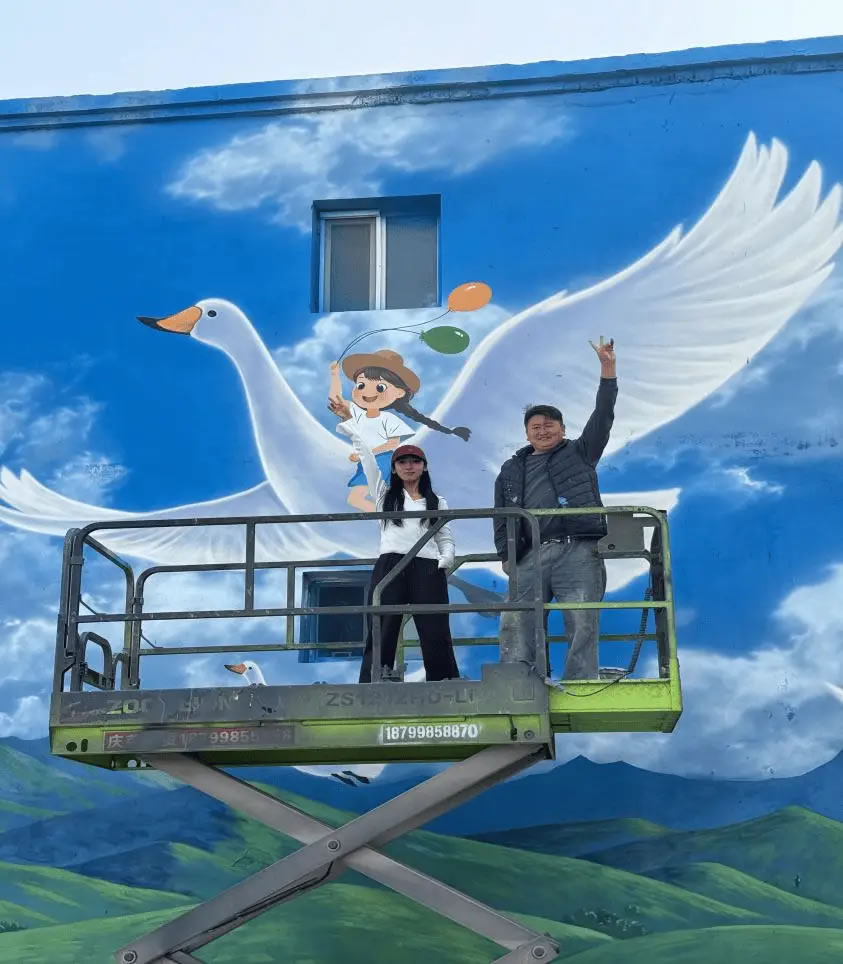 10月25日,新疆庫爾勒市杜鵑河畔天鵝驛站旁,一幅高15米、寬13米的天鵝主題彩繪正式完成創(chuàng)作。墻繪師雷雪帶領(lǐng)團隊耗時十幾天匠心打磨,將藍(lán)天白云、河流高山與靈動天鵝的景致定格在墻體之上,為這座城市的“生態(tài)名片”再添藝術(shù)亮色。