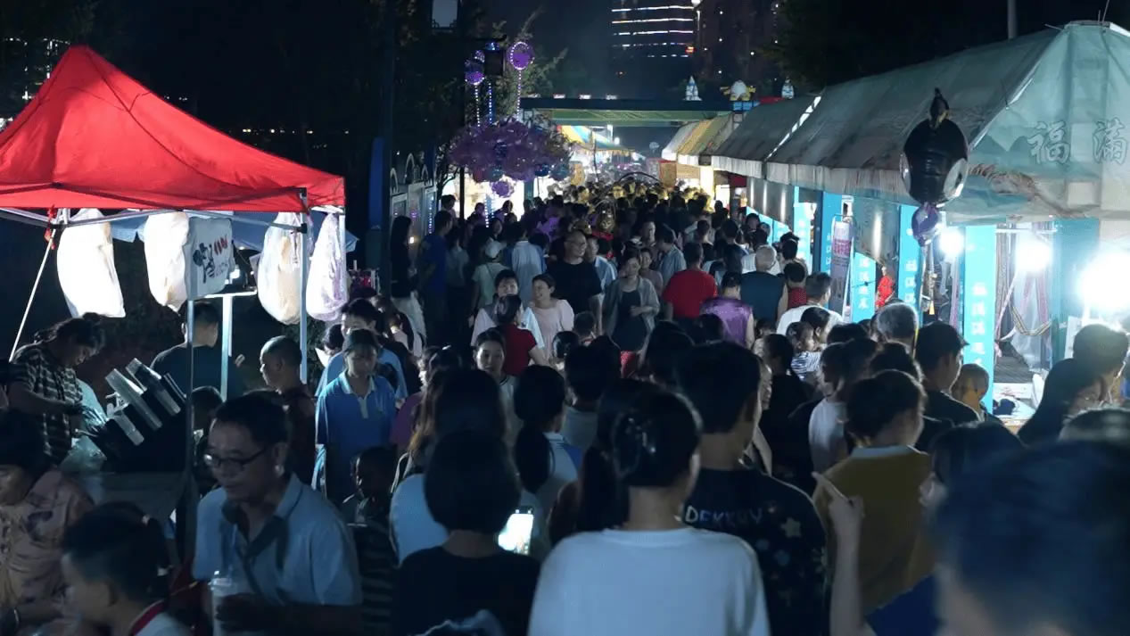 活動現(xiàn)場,產(chǎn)品展銷、非遺展演、親子游樂、特色美食四大板塊同步開啟,非遺火壺、浪漫銀河冷焰瀑布秀、非遺打鐵花等輪番上演。活動首晚便吸引市民游客超5000人次,叫賣聲、音樂聲交織,摩肩接踵的人群中涌動著消費(fèi)熱潮。
