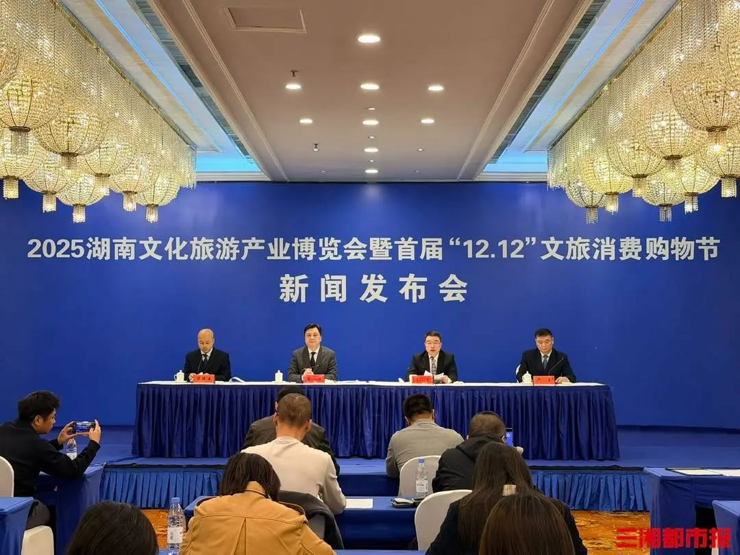 2025湖南文化旅游產(chǎn)業(yè)博覽會(huì)暨首屆“12·12”文旅消費(fèi)購(gòu)物節(jié)新聞發(fā)布會(huì)現(xiàn)場(chǎng)。曾冠霖 攝