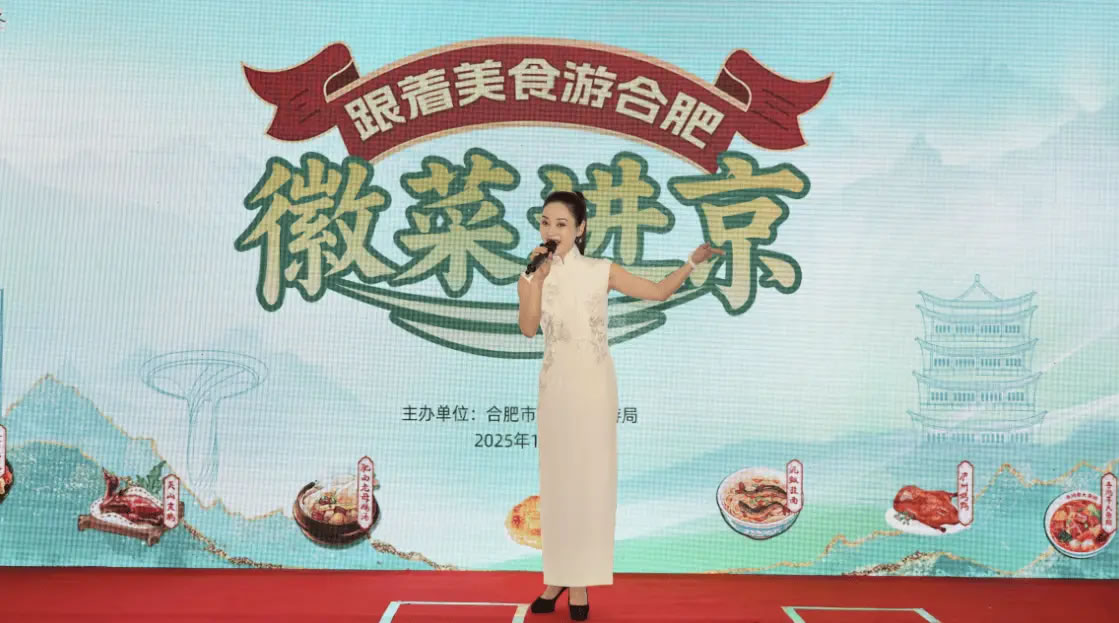 18:30,活動正式拉開帷幕,美食宣傳片帶觀眾在線“品嘗”徽味的獨特魅力和徽廚的匠心故事;現(xiàn)場演繹的黃梅戲唱腔婉轉(zhuǎn),將江淮柔情融入京華夜色;合肥市文旅局代表登臺推介,帶眾人感受合肥這座“科里科氣”與“文里文氣”并存的城市魅力。