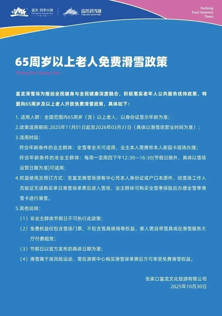 記者查詢發(fā)現(xiàn),張家口其他滑雪場(chǎng)也有推出針對(duì)老年群體的優(yōu)惠政策,包括滑雪半價(jià)或免費(fèi)。